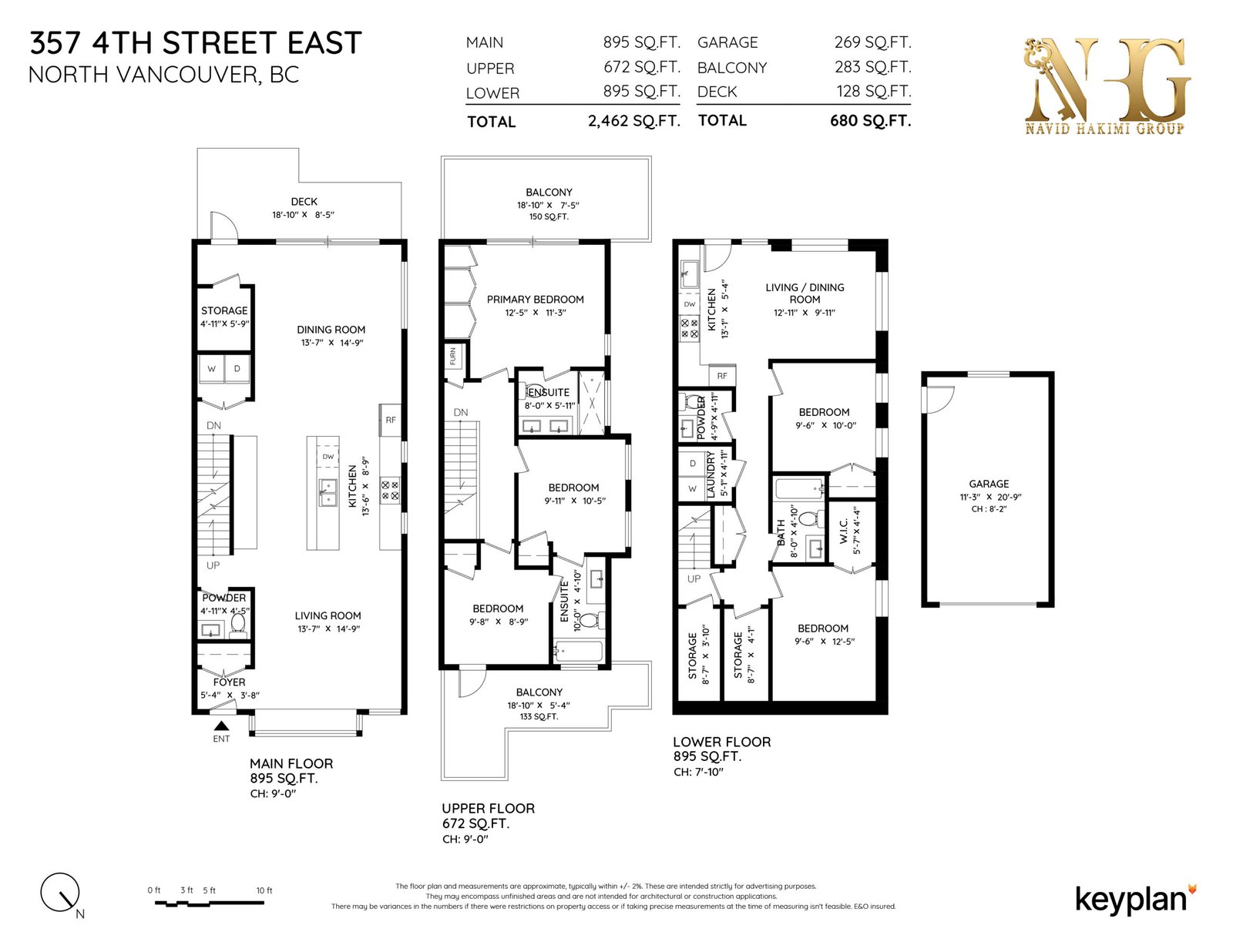 Welcome to the best ½ Duplex in North Vancouver, 357 E 4TH STREET, located on a quite street. This property is only 4 years old, but looks brand new. It offers 5 beds, 5 baths, 2,462 SF of living space, a legal suite, a detached garage, and 2/5/10 Home Insurance Warranty. The main floor offers 9 FT tall ceilings and 895 SF including a proper living, dining, & kitchen with a large island which is ideal for entertainment, 30 SF of storage, and a powder room. The upper floor offers 9 FT tall ceilings and 672 SF including a primary bedroom with a 4-piece ensuite bathroom, in addition to 2 more bedrooms and a Jack & Jill style bathroom. The lower floor offers 895 SF including a 2 beds/2 baths + den legal suite with tenants on MTM lease, paying $2900/month ** OPEN HOUSE: Sat, April 13th, 2-4 **
